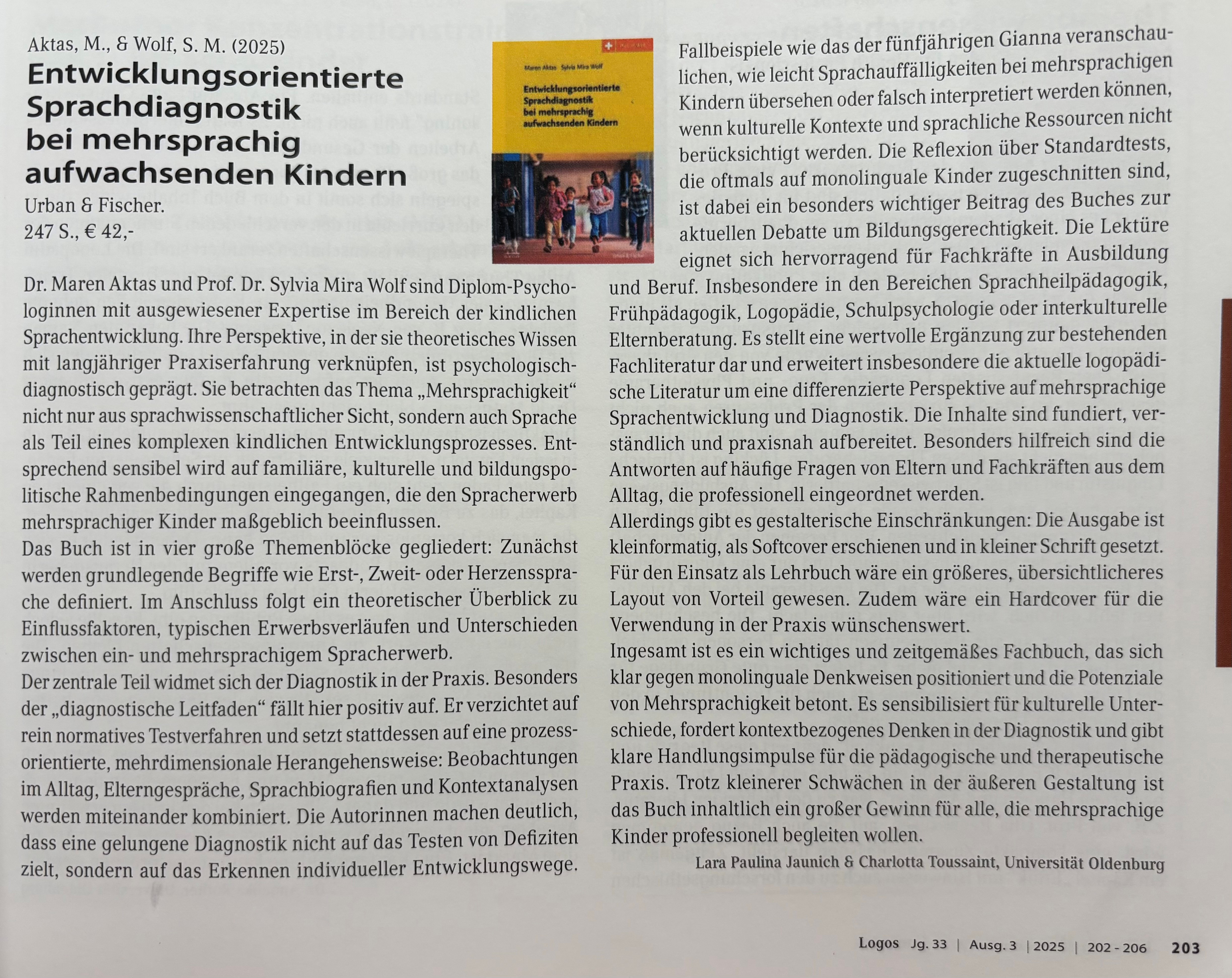 Dass mir unser Buch gut gefällt, liegt wohl in der Natur der Sache. Nun ist die erste Rezension in der Fachzeitschrift LOGOS erschienen.v